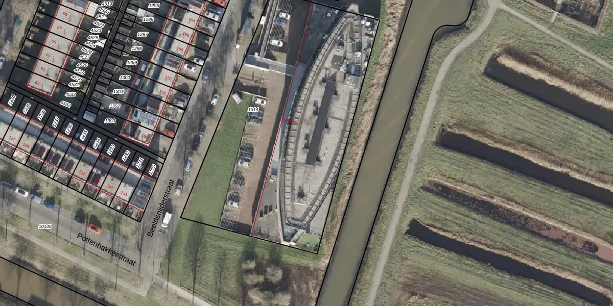 Het perceel waarop Beeldsnijderstraat 359 staat heeft een oppervlakte van 3266 m². Dit is een zeer groot perceel. De perceeloppervlakte wordt geregistreerd door het Kadaster. Gedetailleerde informatie over de maten van dit perceel kunt u vinden in het rapport Kadastrale kaart met maatvoering van Beeldsnijderstraat 359.