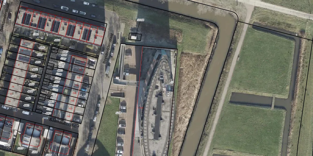 Het perceel waarop Beeldsnijderstraat 85 staat heeft een oppervlakte van 3388 m². Dit is een zeer groot perceel. De perceeloppervlakte wordt geregistreerd door het Kadaster. Gedetailleerde informatie over de maten van dit perceel kunt u vinden in het rapport Kadastrale kaart met maatvoering van Beeldsnijderstraat 85.