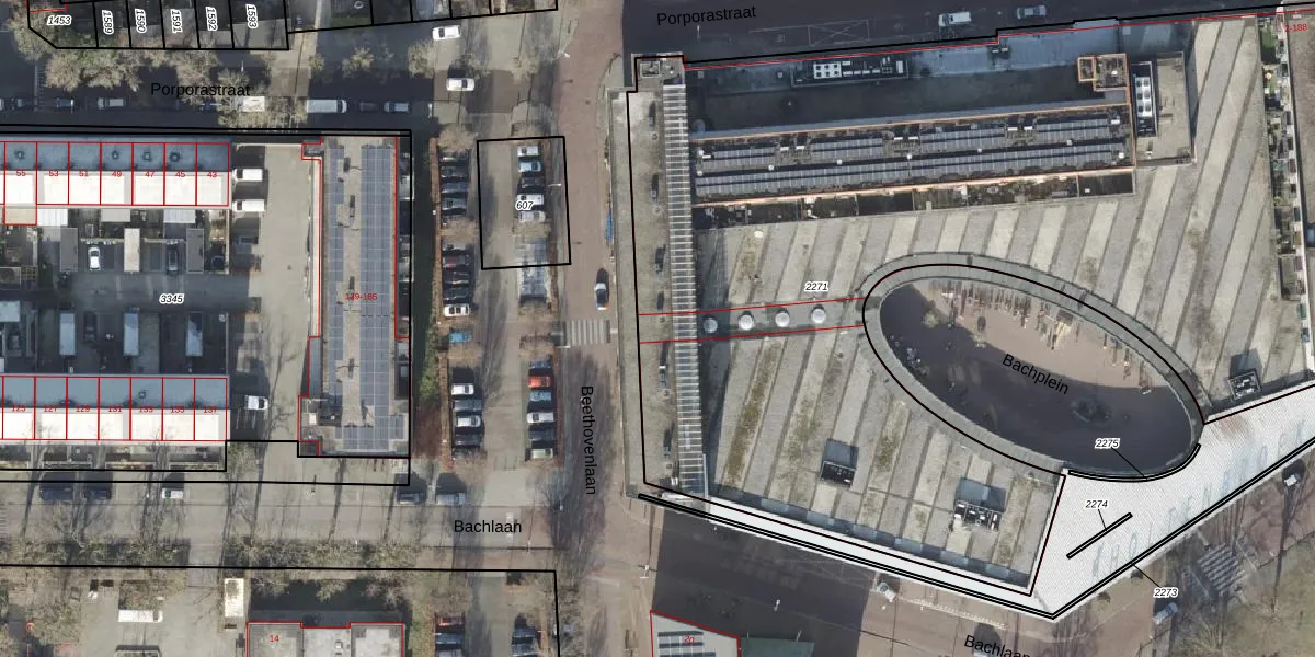 Het perceel waarop Beethovenlaan 402 staat heeft een oppervlakte van 7247 m². Dit is een zeer groot perceel. De perceeloppervlakte wordt geregistreerd door het Kadaster. Gedetailleerde informatie over de maten van dit perceel kunt u vinden in het rapport Kadastrale kaart met maatvoering van Beethovenlaan 402.