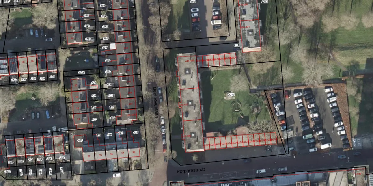 Het perceel waarop Beethovenlaan 442 staat heeft een oppervlakte van 3180 m². Dit is een zeer groot perceel. De perceeloppervlakte wordt geregistreerd door het Kadaster. Gedetailleerde informatie over de maten van dit perceel kunt u vinden in het rapport Kadastrale kaart met maatvoering van Beethovenlaan 442.