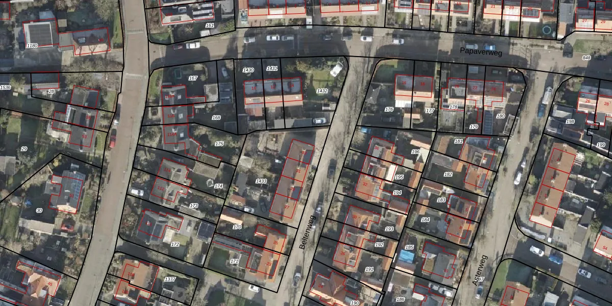 Het perceel waarop Beltenweg 33 staat heeft een oppervlakte van 776 m². Dit is een groot perceel. De perceeloppervlakte wordt geregistreerd door het Kadaster. Gedetailleerde informatie over de maten van dit perceel kunt u vinden in het rapport Kadastrale kaart met maatvoering van Beltenweg 33.