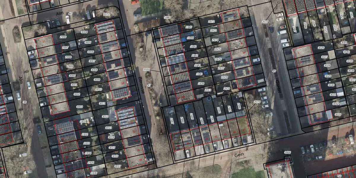 Gebruik de zoekbalk of klik op een perceel voor informatie over de adressen binnen dit perceel.