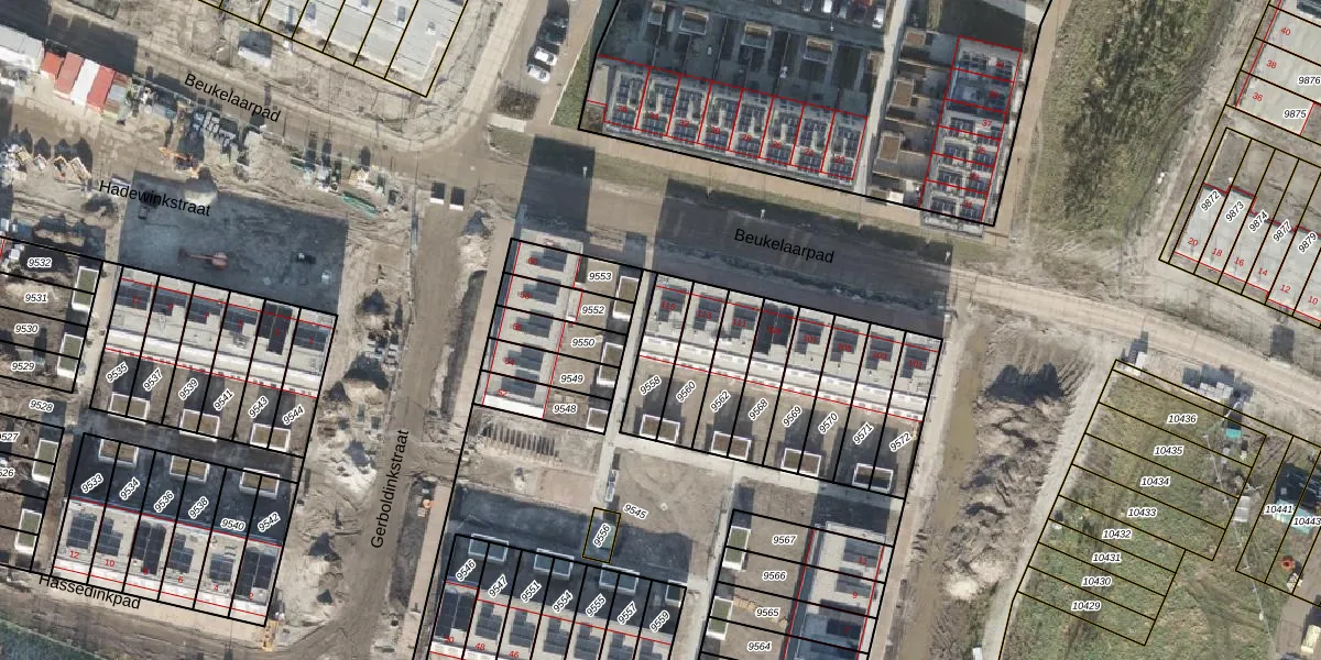 Gebruik de zoekbalk of klik op een perceel voor informatie over de adressen binnen dit perceel.