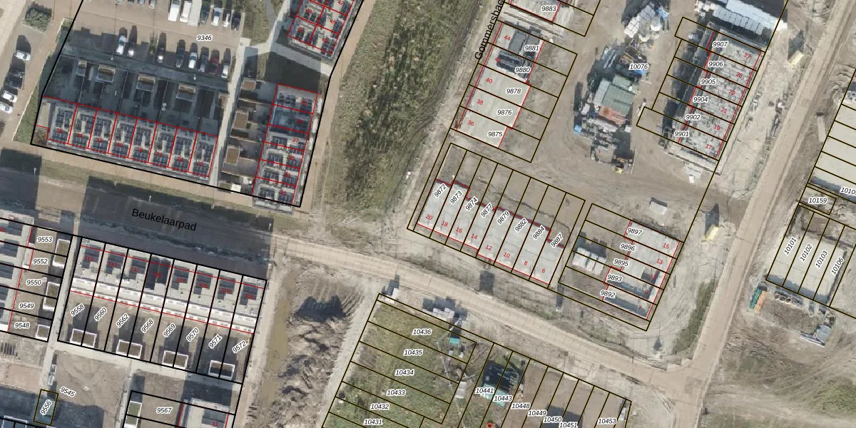 Het perceel waarop Beukelaarpad 20 staat heeft een oppervlakte van 94 m². Dit is een klein perceel. De perceeloppervlakte wordt geregistreerd door het Kadaster. Gedetailleerde informatie over de maten van dit perceel kunt u vinden in het rapport Kadastrale kaart met maatvoering van Beukelaarpad 20.