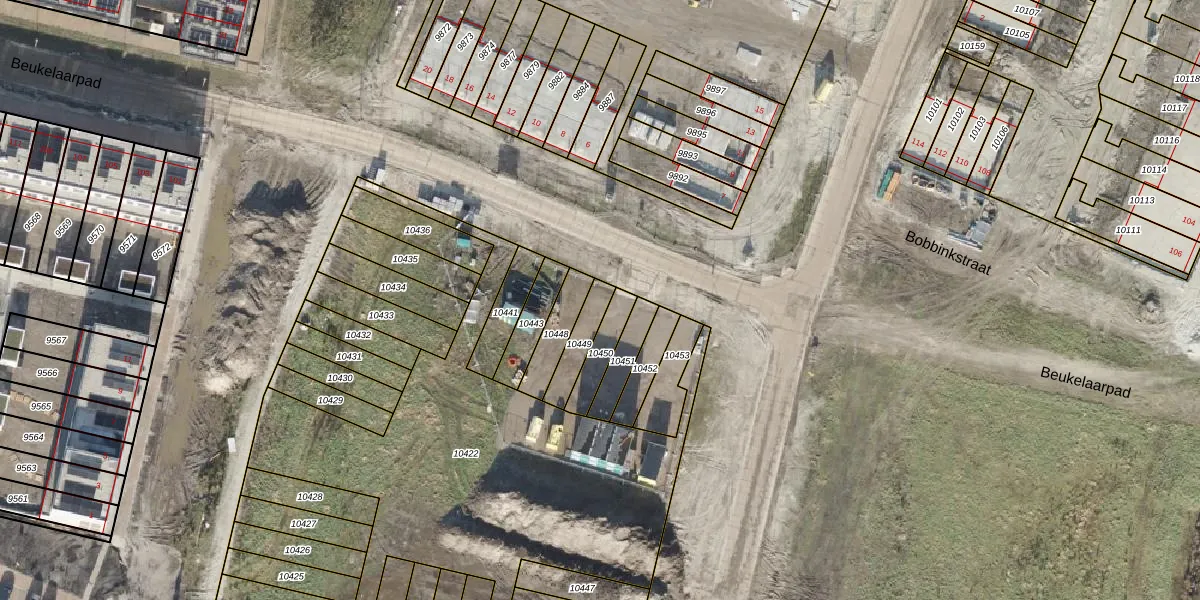 Het perceel waarop Beukelaarpad 93 staat heeft een oppervlakte van 87 m². Dit is een klein perceel. De perceeloppervlakte wordt geregistreerd door het Kadaster. Gedetailleerde informatie over de maten van dit perceel kunt u vinden in het rapport Kadastrale kaart met maatvoering van Beukelaarpad 93.