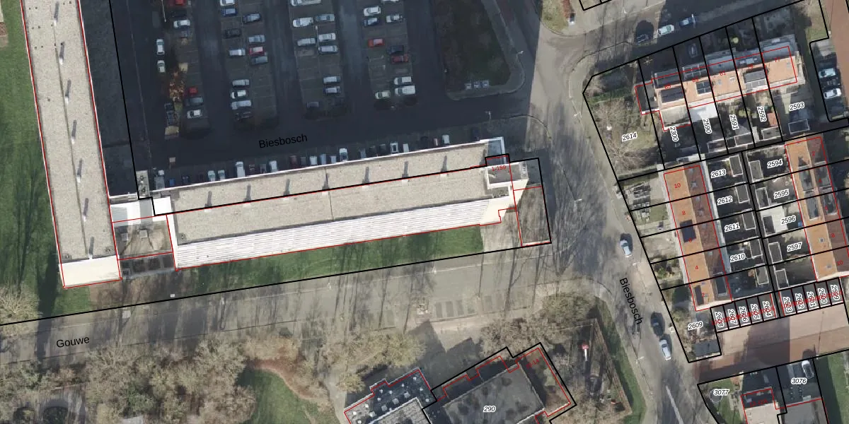 Het perceel waarop Biesbosch 115 staat heeft een oppervlakte van 6800 m². Dit is een zeer groot perceel. De perceeloppervlakte wordt geregistreerd door het Kadaster. Gedetailleerde informatie over de maten van dit perceel kunt u vinden in het rapport Kadastrale kaart met maatvoering van Biesbosch 115.