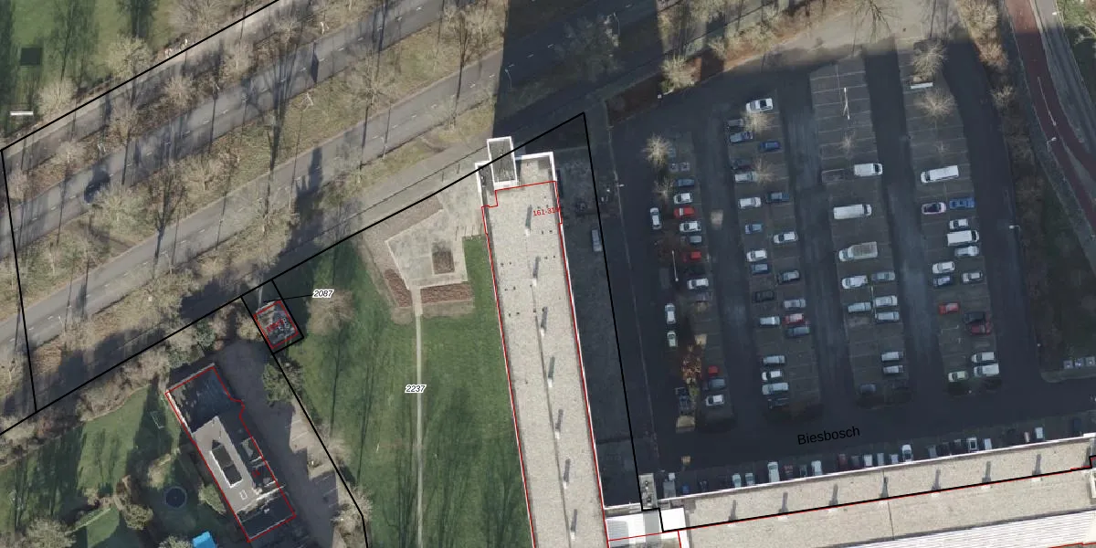 Het perceel waarop Biesbosch 195 staat heeft een oppervlakte van 6800 m². Dit is een zeer groot perceel. De perceeloppervlakte wordt geregistreerd door het Kadaster. Gedetailleerde informatie over de maten van dit perceel kunt u vinden in het rapport Kadastrale kaart met maatvoering van Biesbosch 195.