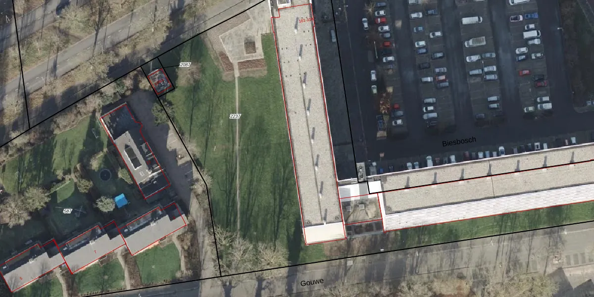 Het perceel waarop Biesbosch 313 staat heeft een oppervlakte van 6800 m². Dit is een zeer groot perceel. De perceeloppervlakte wordt geregistreerd door het Kadaster. Gedetailleerde informatie over de maten van dit perceel kunt u vinden in het rapport Kadastrale kaart met maatvoering van Biesbosch 313.