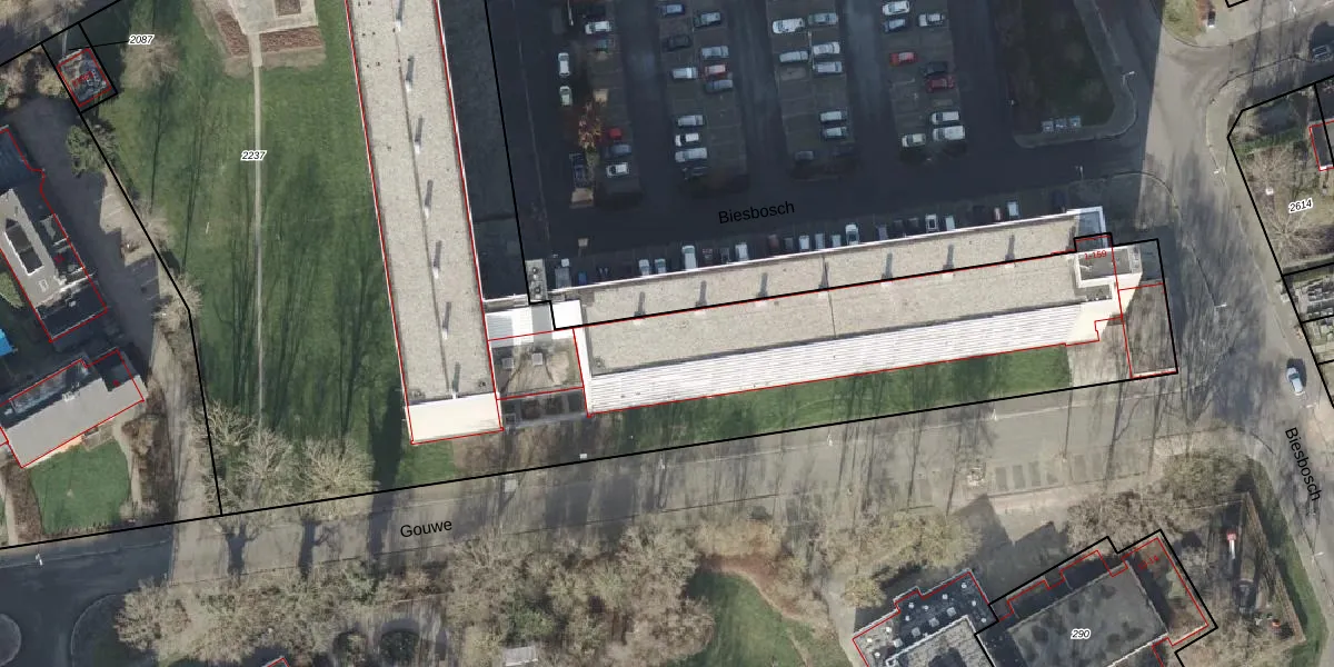 Het perceel waarop Biesbosch 45 staat heeft een oppervlakte van 6800 m². Dit is een zeer groot perceel. De perceeloppervlakte wordt geregistreerd door het Kadaster. Gedetailleerde informatie over de maten van dit perceel kunt u vinden in het rapport Kadastrale kaart met maatvoering van Biesbosch 45.