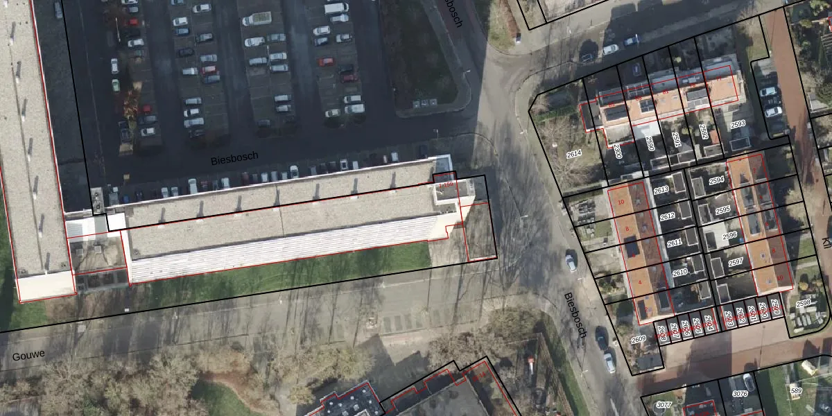 Het perceel waarop Biesbosch 65 staat heeft een oppervlakte van 6800 m². Dit is een zeer groot perceel. De perceeloppervlakte wordt geregistreerd door het Kadaster. Gedetailleerde informatie over de maten van dit perceel kunt u vinden in het rapport Kadastrale kaart met maatvoering van Biesbosch 65.