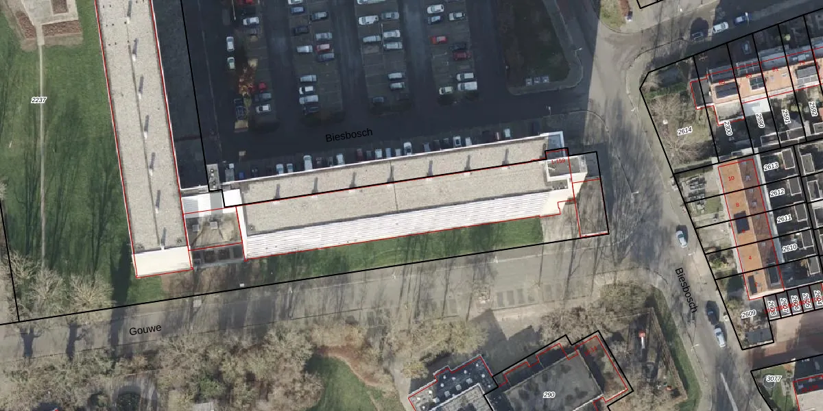 Het perceel waarop Biesbosch 87 staat heeft een oppervlakte van 6800 m². Dit is een zeer groot perceel. De perceeloppervlakte wordt geregistreerd door het Kadaster. Gedetailleerde informatie over de maten van dit perceel kunt u vinden in het rapport Kadastrale kaart met maatvoering van Biesbosch 87.