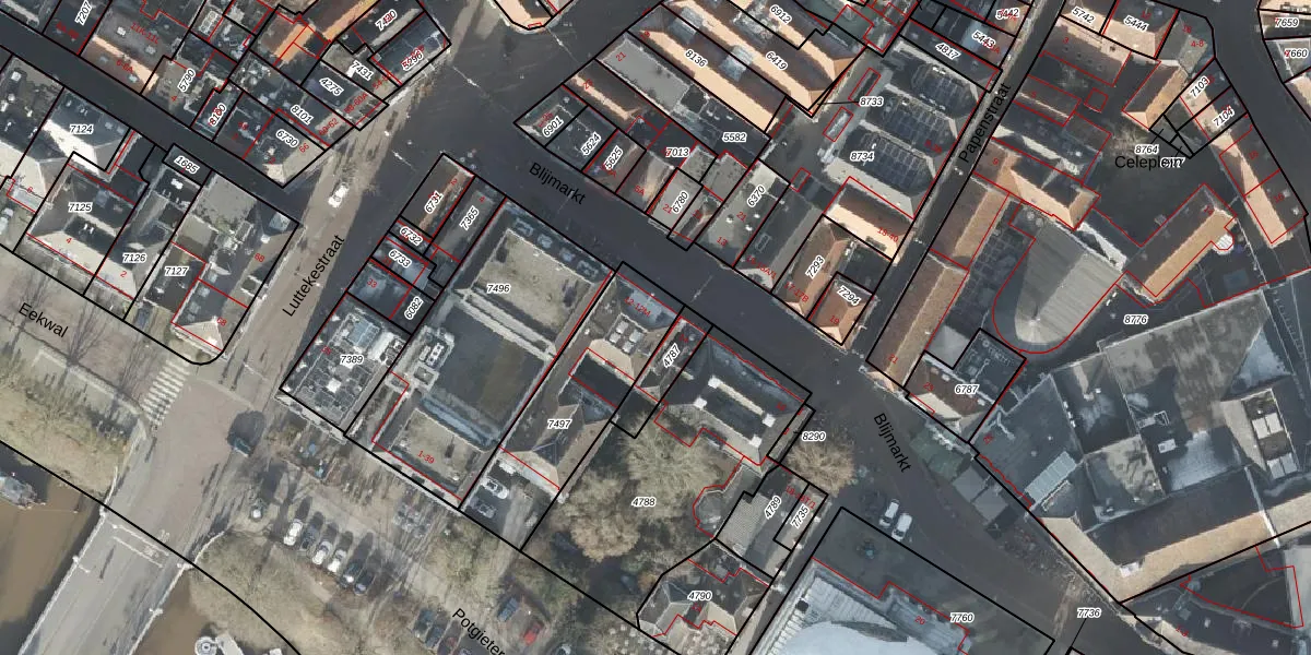 Blijmarkt 12-F is gelegen op kadastraal perceel ZLE00F7497. Deze kadastrale aanduiding is uniek en wordt gebruikt door het Kadaster om eigendomsrechten en andere zakelijke rechten vast te leggen. Het perceel maakt onderdeel uit van de kadastrale gemeente Zwolle.