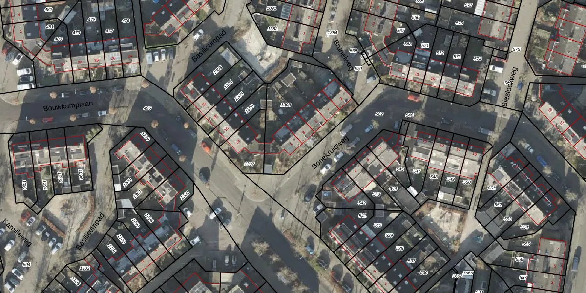 Bonekruidweg 1 is gelegen op kadastraal perceel ZLE00R1308. Deze kadastrale aanduiding is uniek en wordt gebruikt door het Kadaster om eigendomsrechten en andere zakelijke rechten vast te leggen. Het perceel maakt onderdeel uit van de kadastrale gemeente Zwolle.