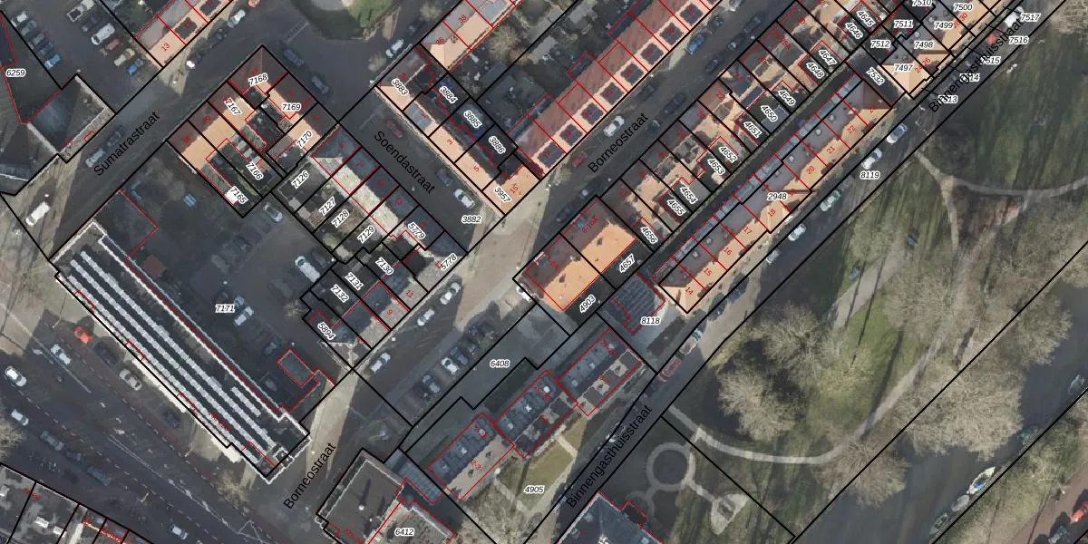 Het perceel waarop Borneostraat 4 staat heeft een oppervlakte van 182 m². Dit is een middelgroot perceel. De perceeloppervlakte wordt geregistreerd door het Kadaster. Gedetailleerde informatie over de maten van dit perceel kunt u vinden in het rapport Kadastrale kaart met maatvoering van Borneostraat 4.