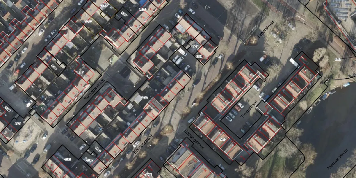 Het perceel waarop Borneostraat 83 staat heeft een oppervlakte van 2285 m². Dit is een zeer groot perceel. De perceeloppervlakte wordt geregistreerd door het Kadaster. Gedetailleerde informatie over de maten van dit perceel kunt u vinden in het rapport Kadastrale kaart met maatvoering van Borneostraat 83.