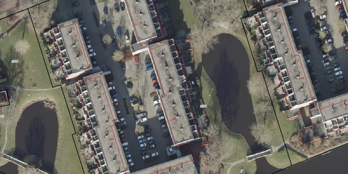 Het perceel waarop Bosplaat 100 staat heeft een oppervlakte van 1,6 ha. Dit is een zeer groot perceel. De perceeloppervlakte wordt geregistreerd door het Kadaster. Gedetailleerde informatie over de maten van dit perceel kunt u vinden in het rapport Kadastrale kaart met maatvoering van Bosplaat 100.