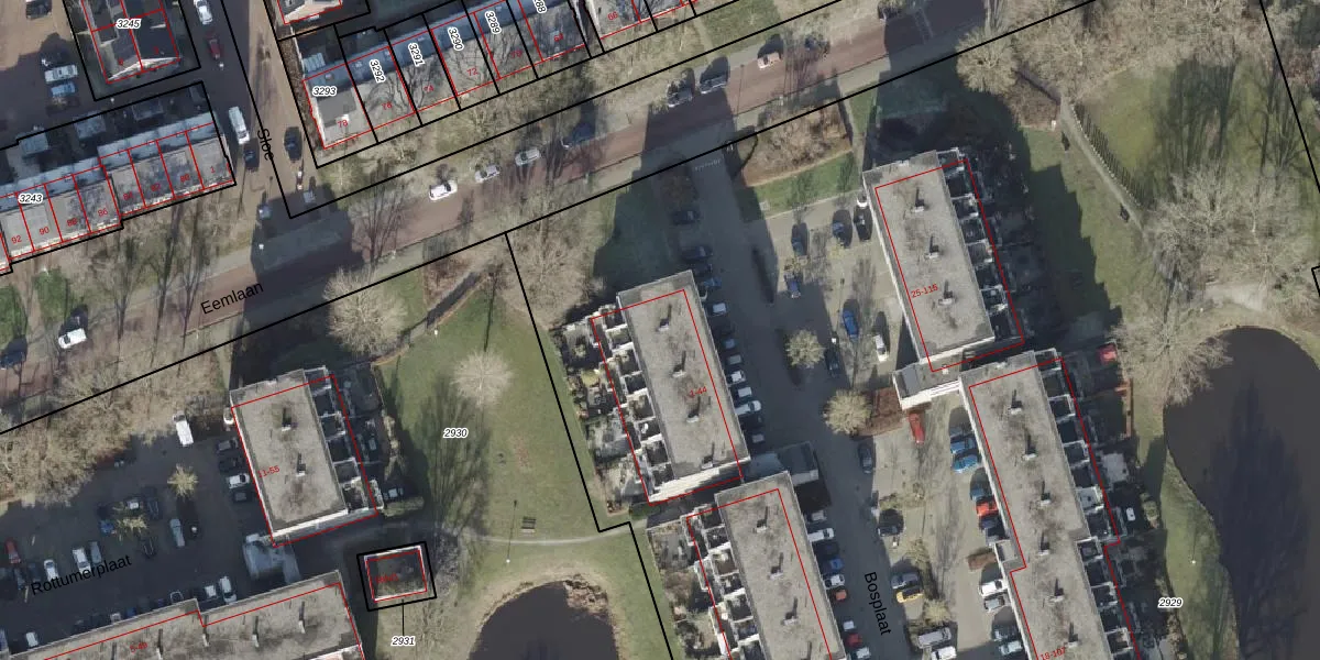 Het perceel waarop Bosplaat 29 staat heeft een oppervlakte van 1,6 ha. Dit is een zeer groot perceel. De perceeloppervlakte wordt geregistreerd door het Kadaster. Gedetailleerde informatie over de maten van dit perceel kunt u vinden in het rapport Kadastrale kaart met maatvoering van Bosplaat 29.