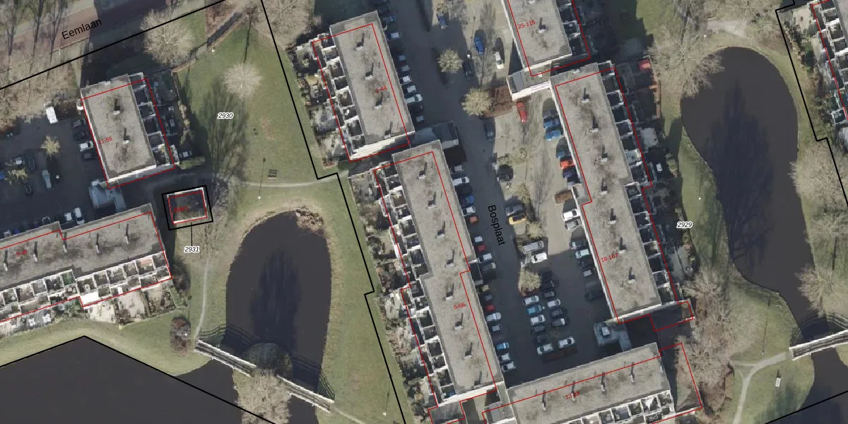 Het perceel waarop Bosplaat 6 staat heeft een oppervlakte van 1,6 ha. Dit is een zeer groot perceel. De perceeloppervlakte wordt geregistreerd door het Kadaster. Gedetailleerde informatie over de maten van dit perceel kunt u vinden in het rapport Kadastrale kaart met maatvoering van Bosplaat 6.