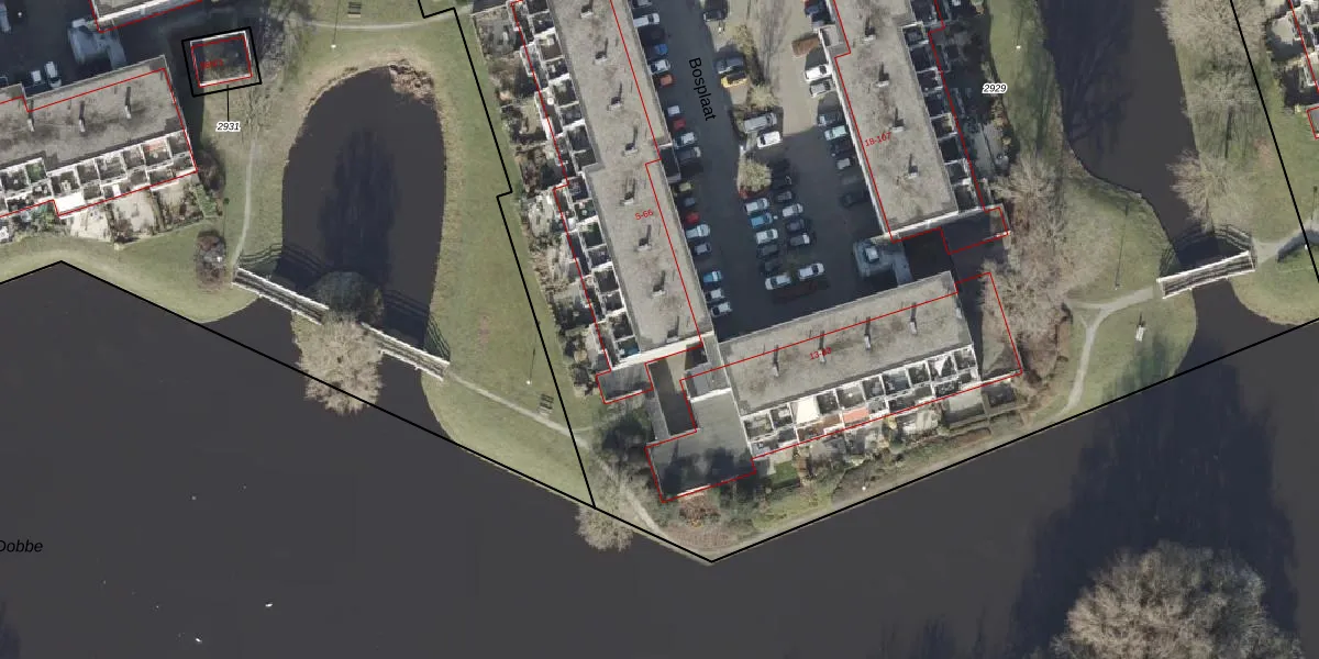 Het perceel waarop Bosplaat 65 staat heeft een oppervlakte van 1,6 ha. Dit is een zeer groot perceel. De perceeloppervlakte wordt geregistreerd door het Kadaster. Gedetailleerde informatie over de maten van dit perceel kunt u vinden in het rapport Kadastrale kaart met maatvoering van Bosplaat 65.