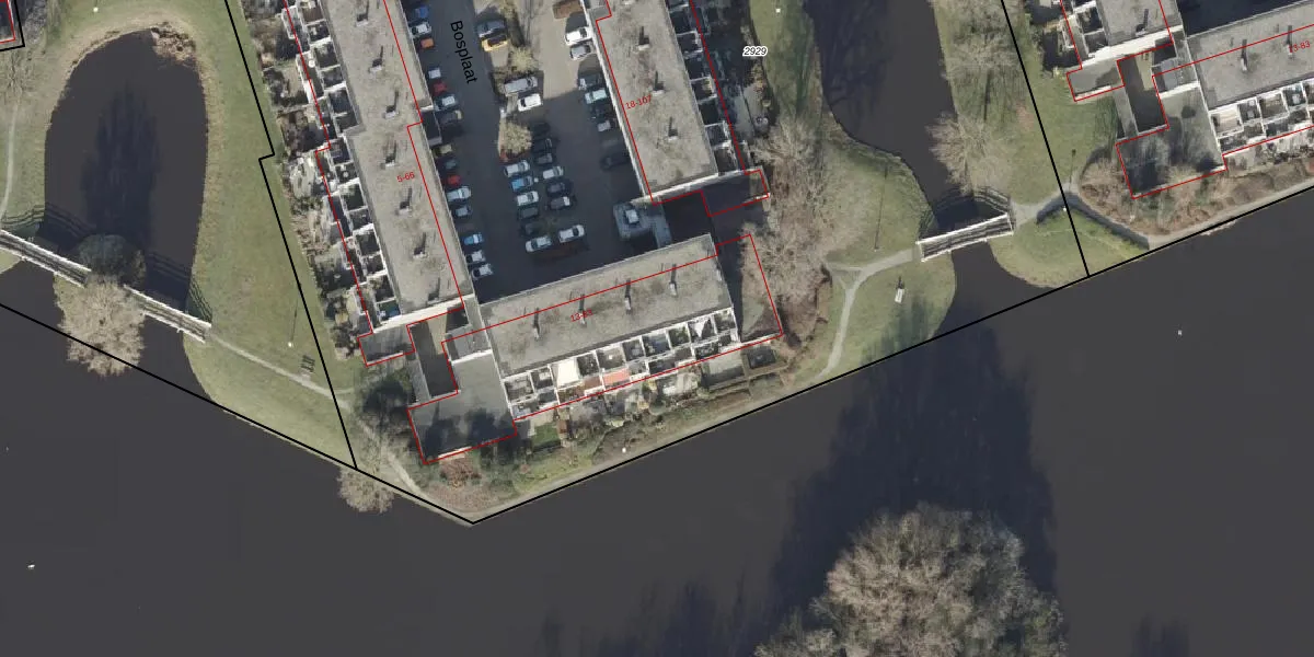 Het perceel waarop Bosplaat 72 staat heeft een oppervlakte van 1,6 ha. Dit is een zeer groot perceel. De perceeloppervlakte wordt geregistreerd door het Kadaster. Gedetailleerde informatie over de maten van dit perceel kunt u vinden in het rapport Kadastrale kaart met maatvoering van Bosplaat 72.