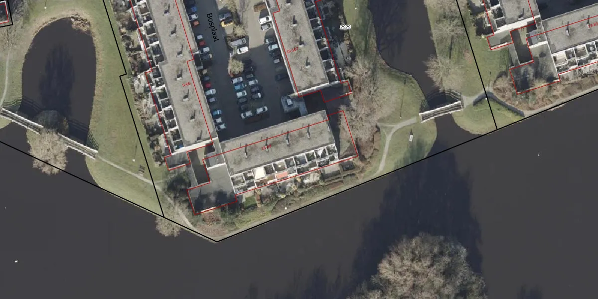 Het perceel waarop Bosplaat 80 staat heeft een oppervlakte van 1,6 ha. Dit is een zeer groot perceel. De perceeloppervlakte wordt geregistreerd door het Kadaster. Gedetailleerde informatie over de maten van dit perceel kunt u vinden in het rapport Kadastrale kaart met maatvoering van Bosplaat 80.