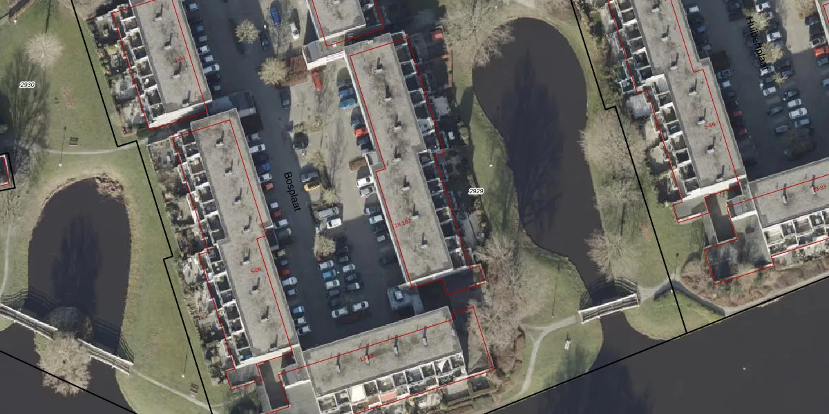 Het perceel waarop Bosplaat 88 staat heeft een oppervlakte van 1,6 ha. Dit is een zeer groot perceel. De perceeloppervlakte wordt geregistreerd door het Kadaster. Gedetailleerde informatie over de maten van dit perceel kunt u vinden in het rapport Kadastrale kaart met maatvoering van Bosplaat 88.