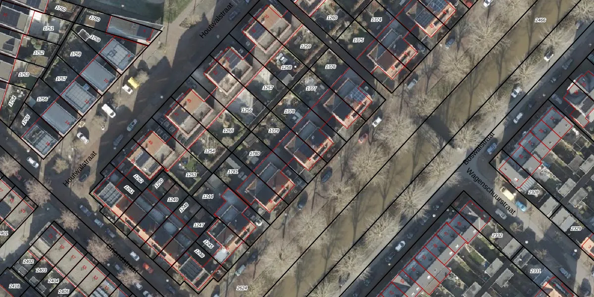 Het perceel waarop Boswalstraat 44 staat heeft een oppervlakte van 250 m². Dit is een middelgroot perceel. De perceeloppervlakte wordt geregistreerd door het Kadaster. Gedetailleerde informatie over de maten van dit perceel kunt u vinden in het rapport Kadastrale kaart met maatvoering van Boswalstraat 44.