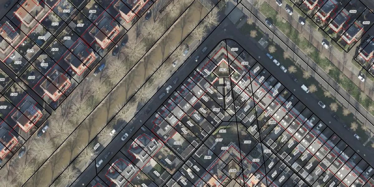Het perceel waarop Boswalstraat 7 staat heeft een oppervlakte van 153 m². Dit is een middelgroot perceel. De perceeloppervlakte wordt geregistreerd door het Kadaster. Gedetailleerde informatie over de maten van dit perceel kunt u vinden in het rapport Kadastrale kaart met maatvoering van Boswalstraat 7.