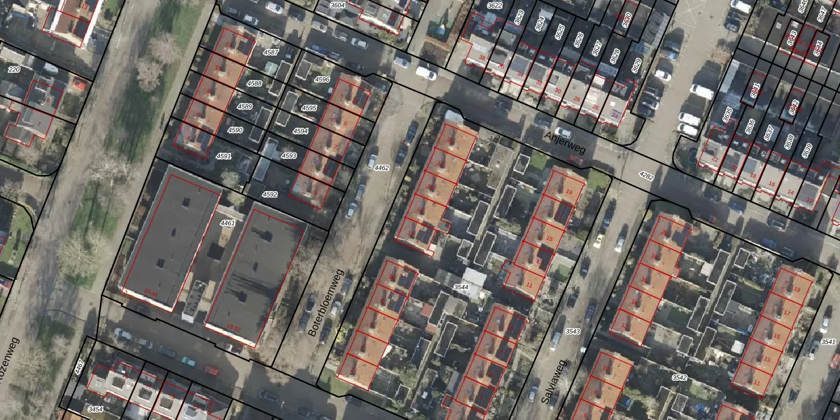 Het perceel waarop Boterbloemweg 14 staat heeft een oppervlakte van 3265 m². Dit is een zeer groot perceel. De perceeloppervlakte wordt geregistreerd door het Kadaster. Gedetailleerde informatie over de maten van dit perceel kunt u vinden in het rapport Kadastrale kaart met maatvoering van Boterbloemweg 14.