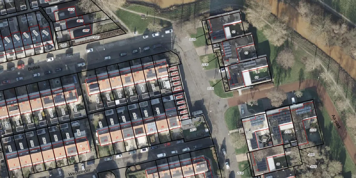 Gebruik de zoekbalk of klik op een perceel voor informatie over de adressen binnen dit perceel.