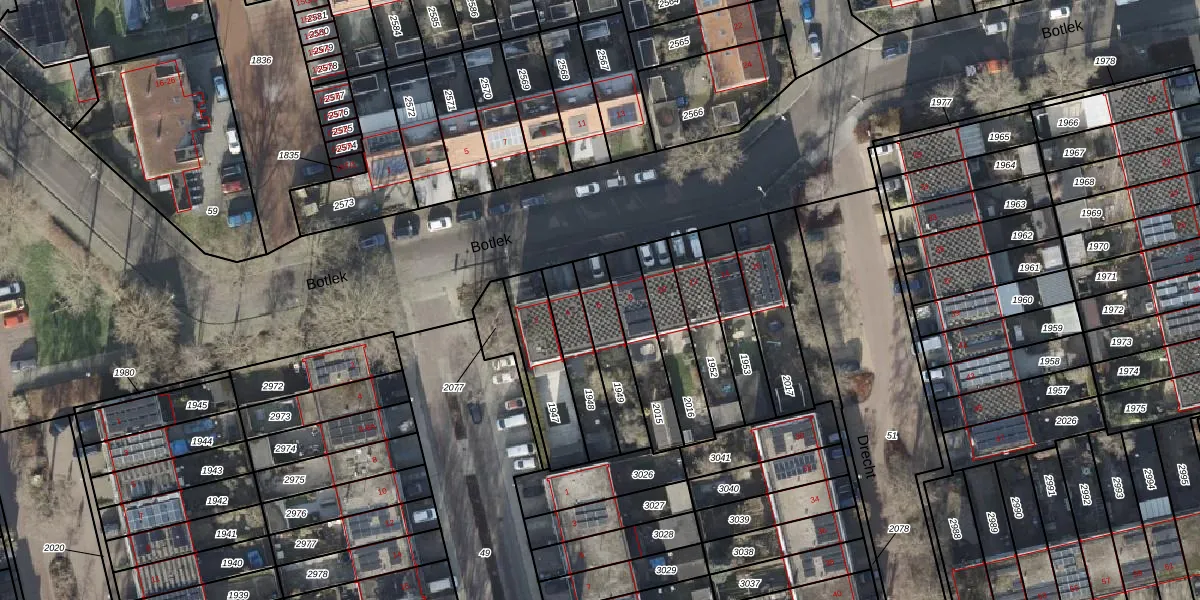 Gebruik de zoekbalk of klik op een perceel voor informatie over de adressen binnen dit perceel.