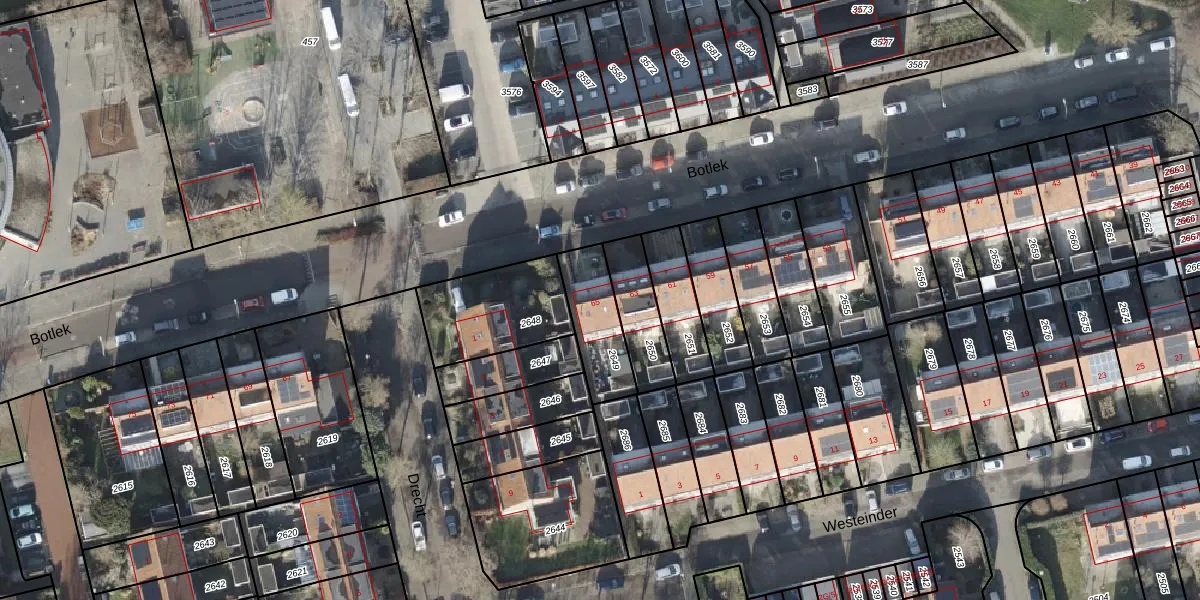Gebruik de zoekbalk of klik op een perceel voor informatie over de adressen binnen dit perceel.