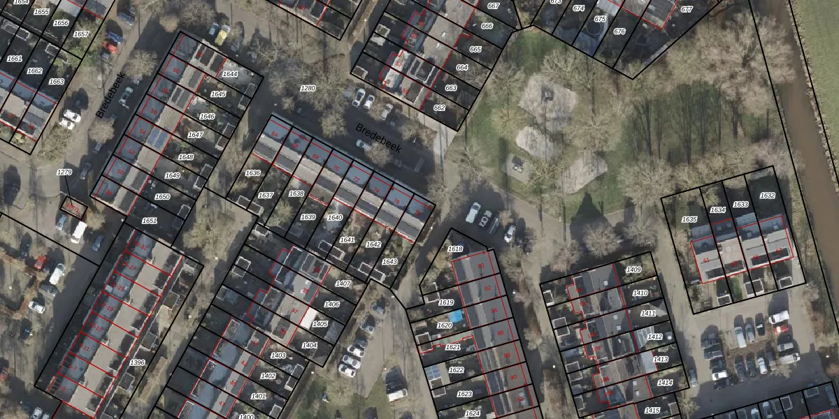 Gebruik de zoekbalk of klik op een perceel voor informatie over de adressen binnen dit perceel.