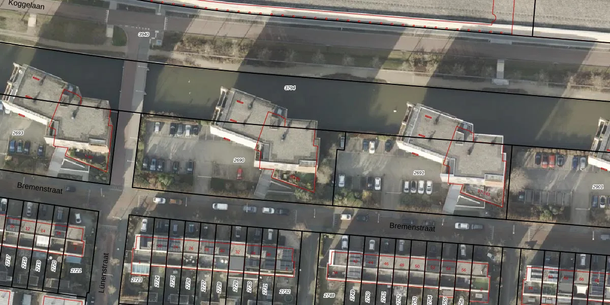 Het perceel waarop Bremenstraat 77 staat heeft een oppervlakte van 1616 m². Dit is een zeer groot perceel. De perceeloppervlakte wordt geregistreerd door het Kadaster. Gedetailleerde informatie over de maten van dit perceel kunt u vinden in het rapport Kadastrale kaart met maatvoering van Bremenstraat 77.