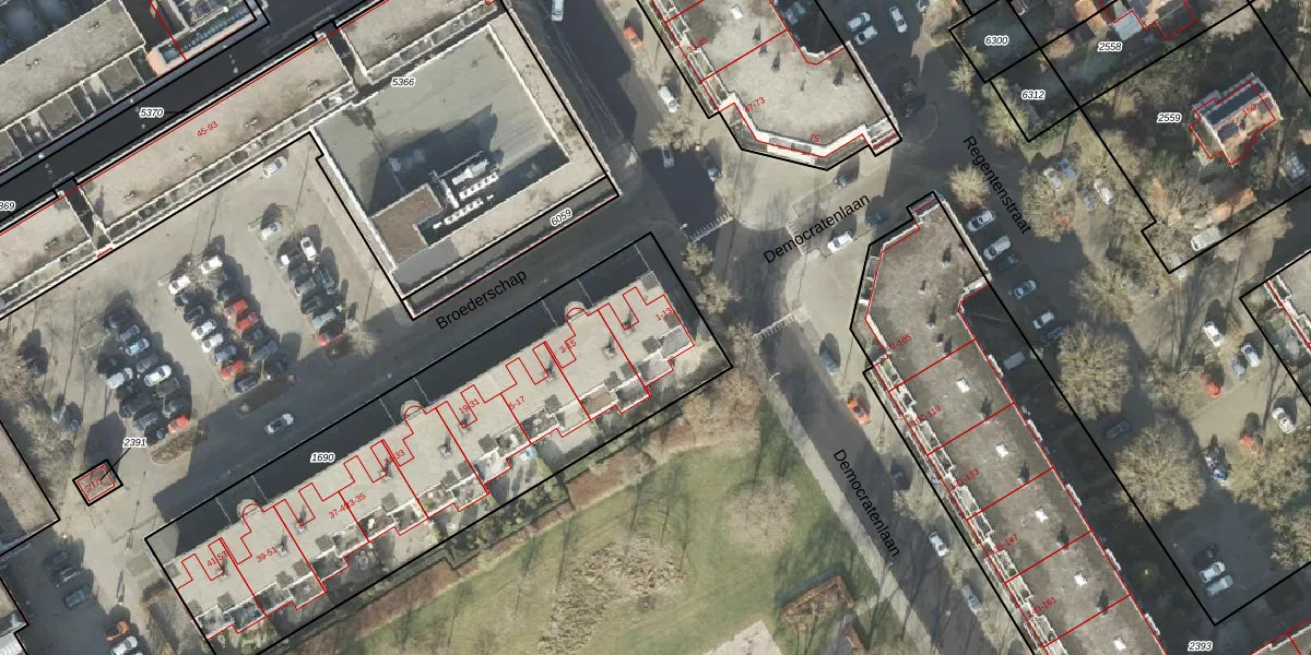 Het perceel waarop Broederschap 7 staat heeft een oppervlakte van 2165 m². Dit is een zeer groot perceel. De perceeloppervlakte wordt geregistreerd door het Kadaster. Gedetailleerde informatie over de maten van dit perceel kunt u vinden in het rapport Kadastrale kaart met maatvoering van Broederschap 7.