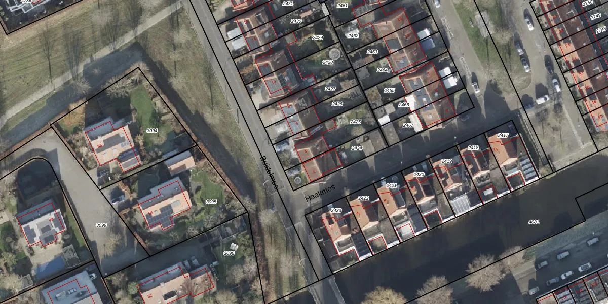 Gebruik de zoekbalk of klik op een perceel voor informatie over de adressen binnen dit perceel.