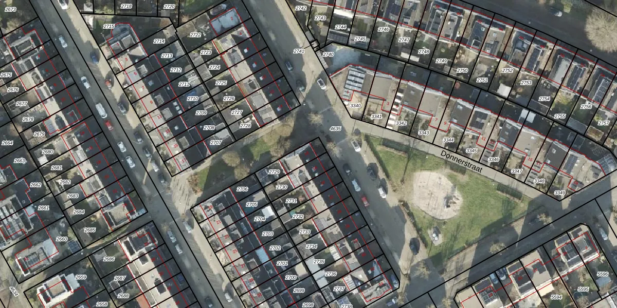 Gebruik de zoekbalk of klik op een perceel voor informatie over de adressen binnen dit perceel.