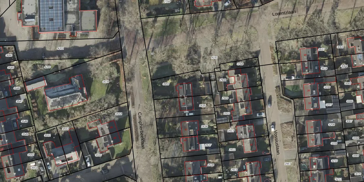Gebruik de zoekbalk of klik op een perceel voor informatie over de adressen binnen dit perceel.