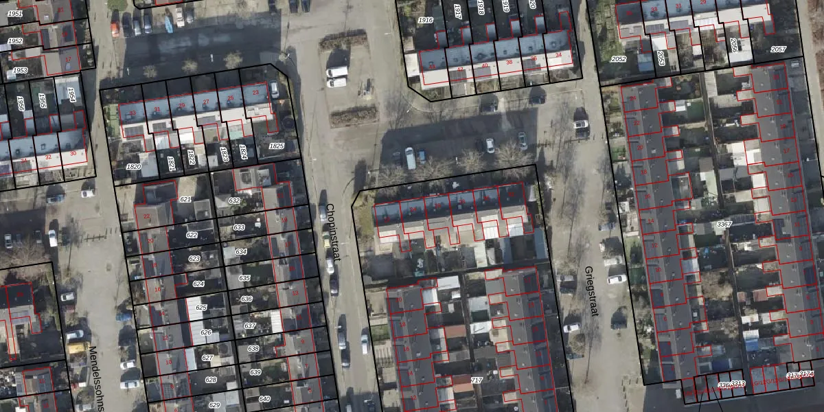 Het perceel waarop Chopinstraat 24 staat heeft een oppervlakte van 3710 m². Dit is een zeer groot perceel. De perceeloppervlakte wordt geregistreerd door het Kadaster. Gedetailleerde informatie over de maten van dit perceel kunt u vinden in het rapport Kadastrale kaart met maatvoering van Chopinstraat 24.