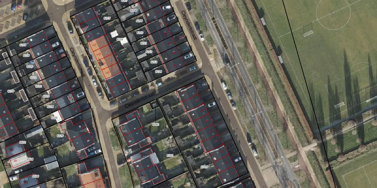 Het perceel waarop Cleyndertstraat 101 staat heeft een oppervlakte van 1566 m². Dit is een zeer groot perceel. De perceeloppervlakte wordt geregistreerd door het Kadaster. Gedetailleerde informatie over de maten van dit perceel kunt u vinden in het rapport Kadastrale kaart met maatvoering van Cleyndertstraat 101.