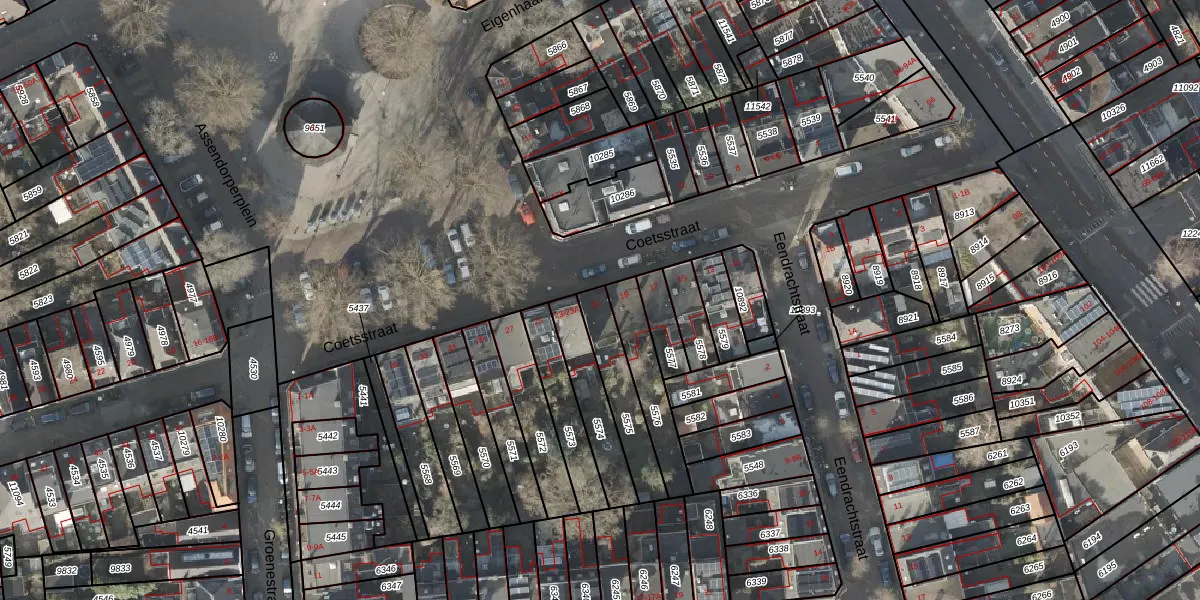 Het perceel waarop Coetsstraat 21 staat heeft een oppervlakte van 182 m². Dit is een middelgroot perceel. De perceeloppervlakte wordt geregistreerd door het Kadaster. Gedetailleerde informatie over de maten van dit perceel kunt u vinden in het rapport Kadastrale kaart met maatvoering van Coetsstraat 21.