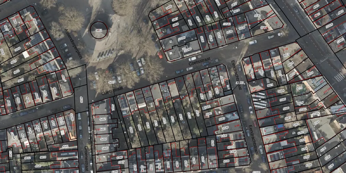 Het perceel waarop Coetsstraat 23-A staat heeft een oppervlakte van 179 m². Dit is een middelgroot perceel. De perceeloppervlakte wordt geregistreerd door het Kadaster. Gedetailleerde informatie over de maten van dit perceel kunt u vinden in het rapport Kadastrale kaart met maatvoering van Coetsstraat 23-A.