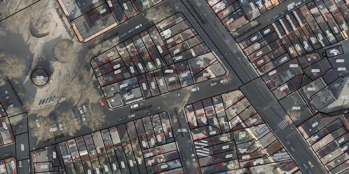 Het perceel waarop Coetsstraat 6 staat heeft een oppervlakte van 109 m². Dit is een middelgroot perceel. De perceeloppervlakte wordt geregistreerd door het Kadaster. Gedetailleerde informatie over de maten van dit perceel kunt u vinden in het rapport Kadastrale kaart met maatvoering van Coetsstraat 6.