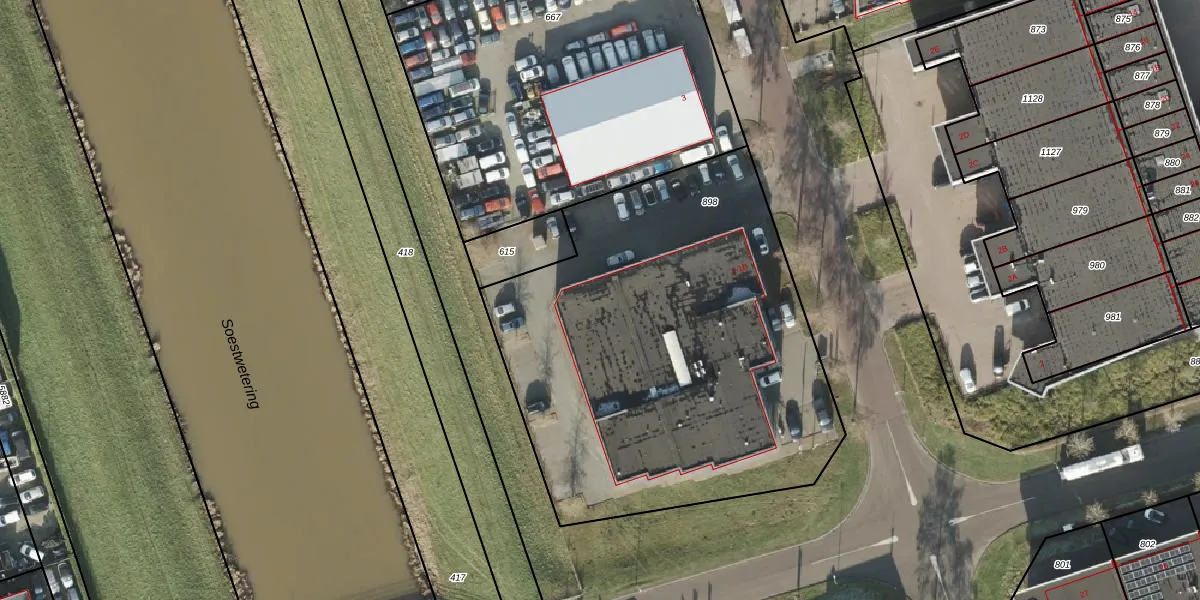 Het perceel waarop Conradstraat 1-B staat heeft een oppervlakte van 2537 m². Dit is een zeer groot perceel. De perceeloppervlakte wordt geregistreerd door het Kadaster. Gedetailleerde informatie over de maten van dit perceel kunt u vinden in het rapport Kadastrale kaart met maatvoering van Conradstraat 1-B.