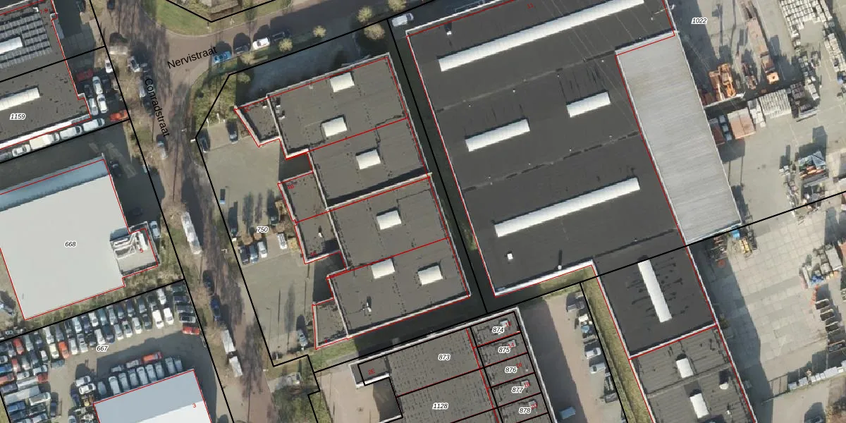 Het perceel waarop Conradstraat 4-A staat heeft een oppervlakte van 3688 m². Dit is een zeer groot perceel. De perceeloppervlakte wordt geregistreerd door het Kadaster. Gedetailleerde informatie over de maten van dit perceel kunt u vinden in het rapport Kadastrale kaart met maatvoering van Conradstraat 4-A.