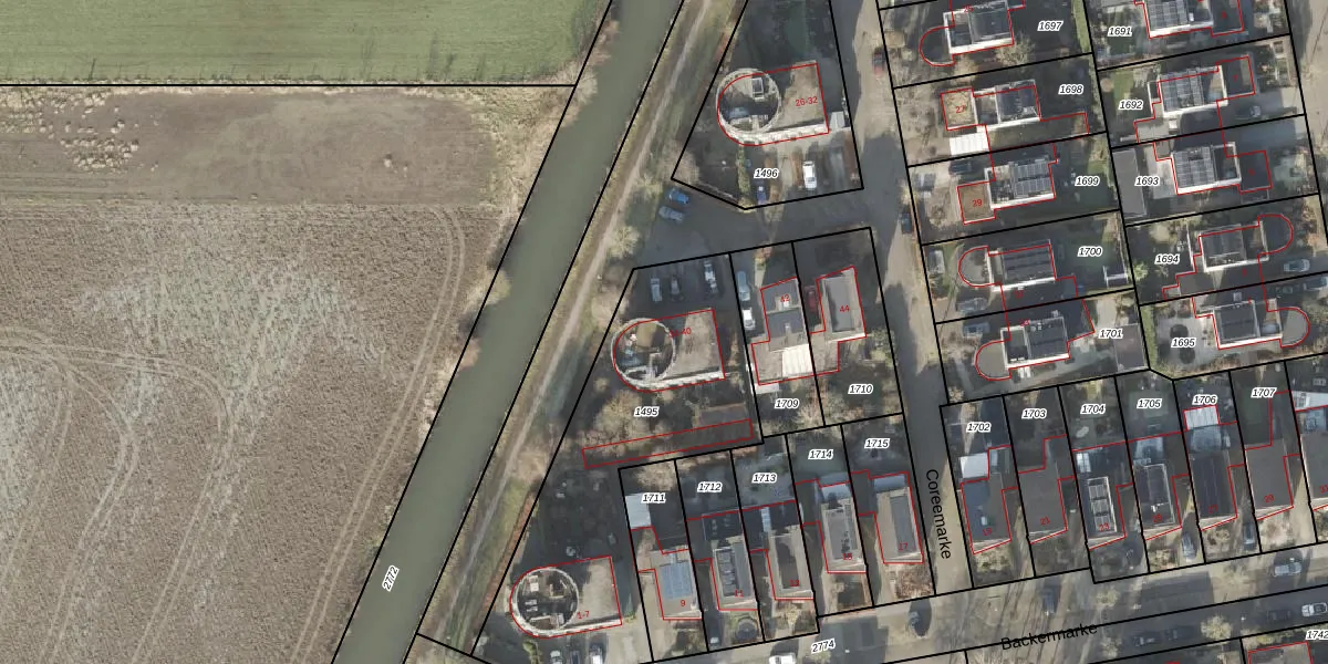 Het perceel waarop Coreemarke 38 staat heeft een oppervlakte van 1290 m². Dit is een zeer groot perceel. De perceeloppervlakte wordt geregistreerd door het Kadaster. Gedetailleerde informatie over de maten van dit perceel kunt u vinden in het rapport Kadastrale kaart met maatvoering van Coreemarke 38.