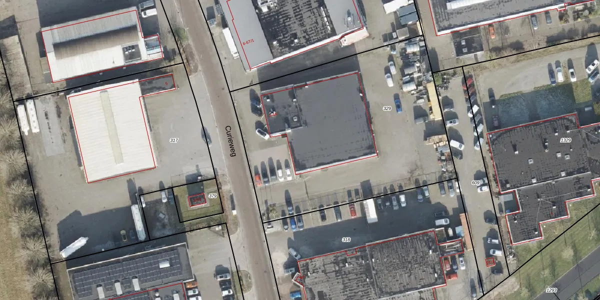 Het perceel waarop Curieweg 4 staat heeft een oppervlakte van 3133 m². Dit is een zeer groot perceel. De perceeloppervlakte wordt geregistreerd door het Kadaster. Gedetailleerde informatie over de maten van dit perceel kunt u vinden in het rapport Kadastrale kaart met maatvoering van Curieweg 4.