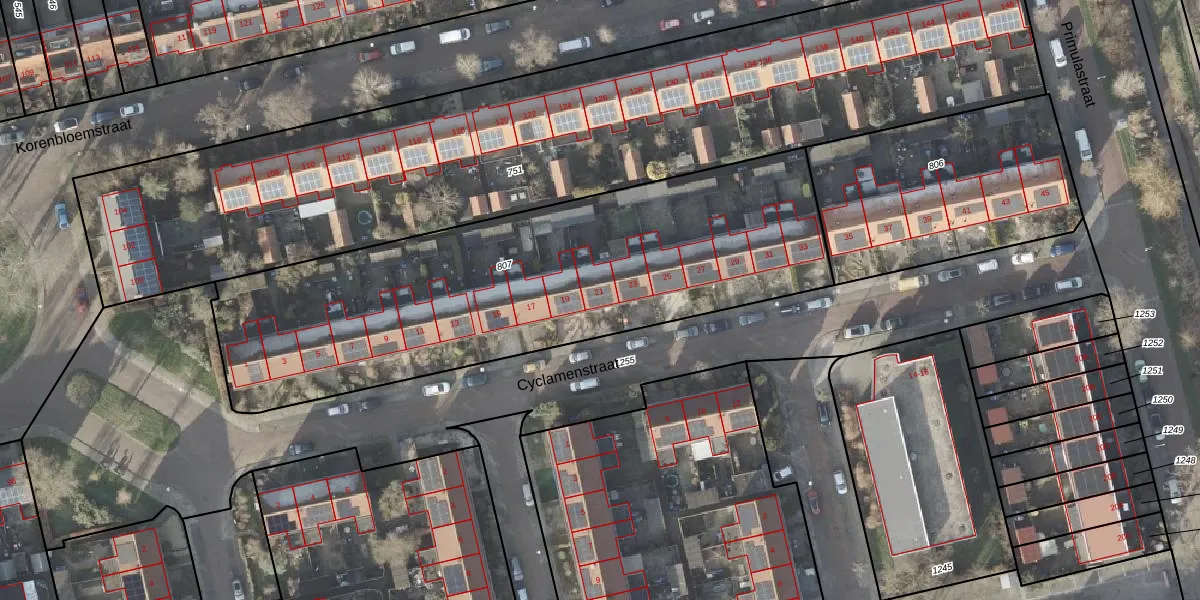 Het perceel waarop Cyclamenstraat 21 staat heeft een oppervlakte van 2360 m². Dit is een zeer groot perceel. De perceeloppervlakte wordt geregistreerd door het Kadaster. Gedetailleerde informatie over de maten van dit perceel kunt u vinden in het rapport Kadastrale kaart met maatvoering van Cyclamenstraat 21.