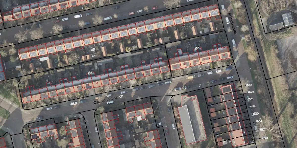 Het perceel waarop Cyclamenstraat 29 staat heeft een oppervlakte van 2360 m². Dit is een zeer groot perceel. De perceeloppervlakte wordt geregistreerd door het Kadaster. Gedetailleerde informatie over de maten van dit perceel kunt u vinden in het rapport Kadastrale kaart met maatvoering van Cyclamenstraat 29.