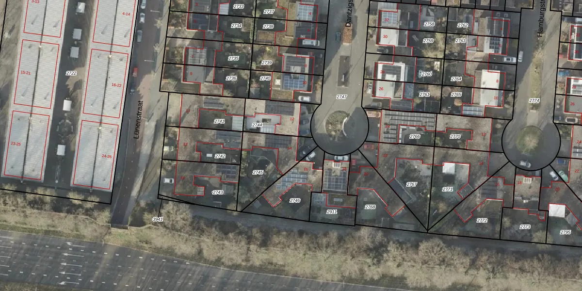 Dantzigstraat 14 is gelegen op kadastraal perceel ZLE00P2745. Deze kadastrale aanduiding is uniek en wordt gebruikt door het Kadaster om eigendomsrechten en andere zakelijke rechten vast te leggen. Het perceel maakt onderdeel uit van de kadastrale gemeente Zwolle.